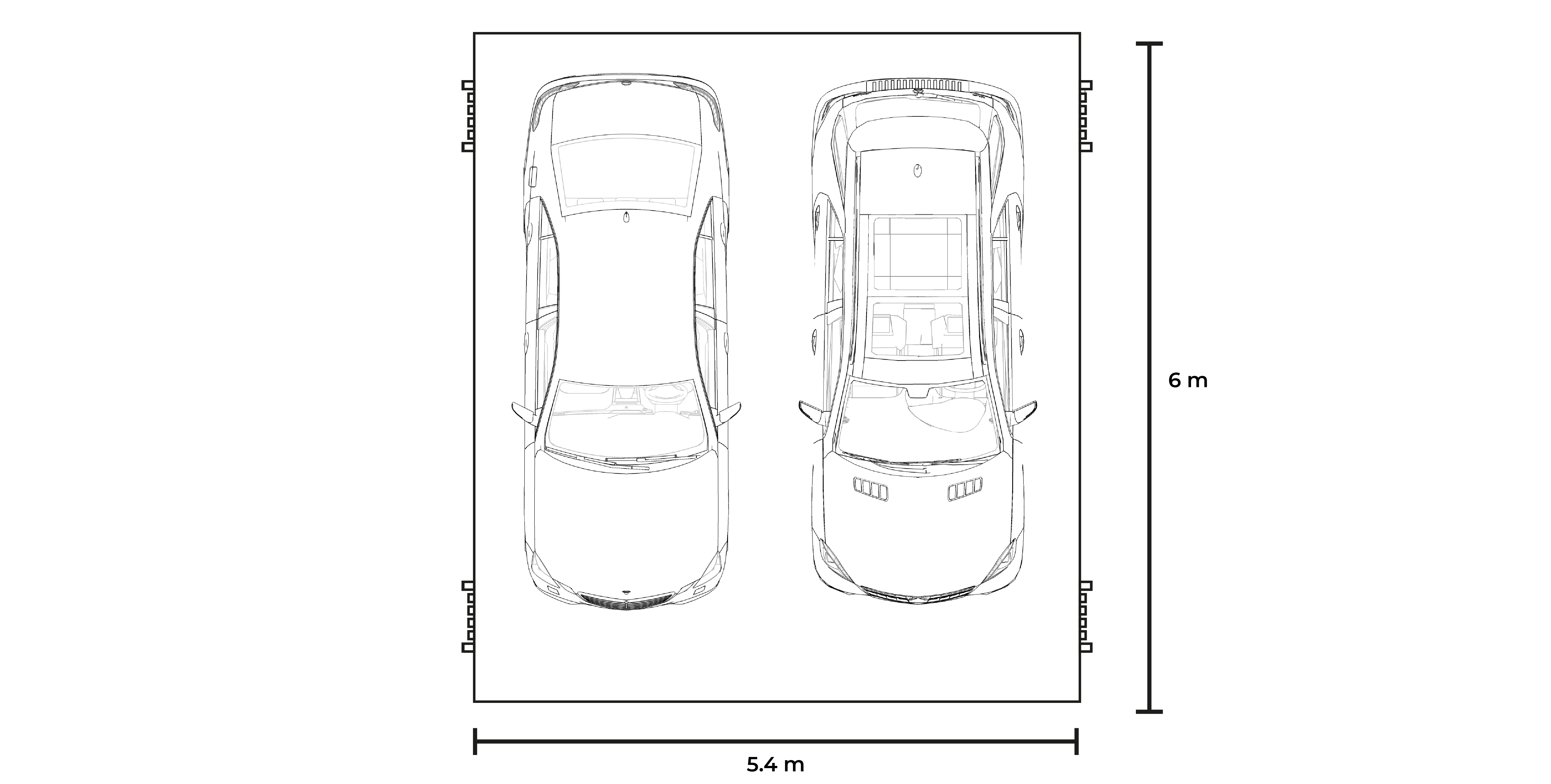 Nudimo vam standardno dimenzijo za 2 avtomobila. Možnost izdelave nadstreška po vaši meri.